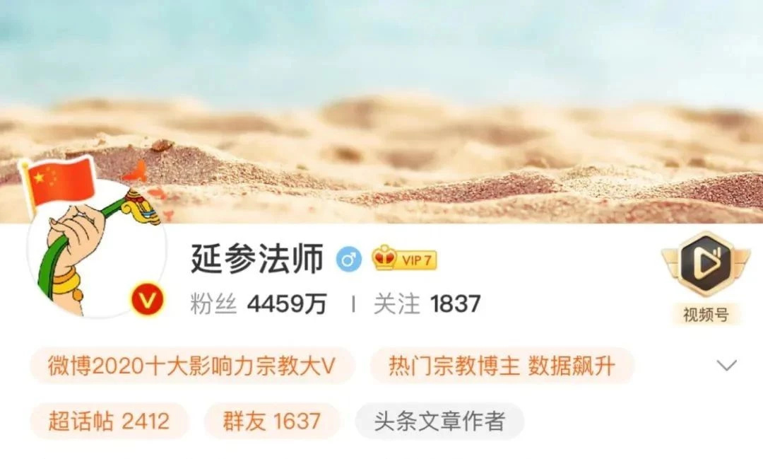 作為一名網(wǎng)紅法延參法師在微博上擁有近45萬的粉絲,同時還玩直播、上綜藝,每一步都走在了時代的前沿。