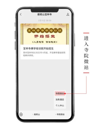 (1)微信關(guān)注【般若山寶林寺】官方公眾號(hào),或者長按下方海報(bào)二維碼,進(jìn)入首頁。